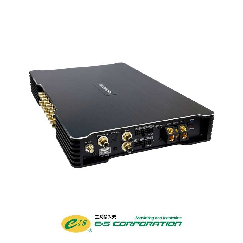 ●仕様:12chパワーアンプ内蔵24chDSP●定格出力:50W×8+100W×4(4Ω)or200W×2(4Ωブリッジ)●周波数特性:20kHz~40kHz●ハイレベル入力:16系統●RCA入力:2系統●スピーカー出力:12系統●RCA出力:16系統●入力感度:ハイレベル最大16V:ローレベル(RCA)最大3V●入力インピーダンス:6Ω●S/N比:100dB●OPTICAL&COAXIAL入力装備(最大192kHz/24bit)●Bluetooth5.0対応(aptX HD/aptX/AAC/SBC)●USB-DAC装備(最大192kHz/32bit※2025年10月出荷分より)●サイズ(幅×奥行×高さ):331mm×217mm×43mm●推奨ヒューズ容量:60A以上●リモートコントローラー対応(別売)
