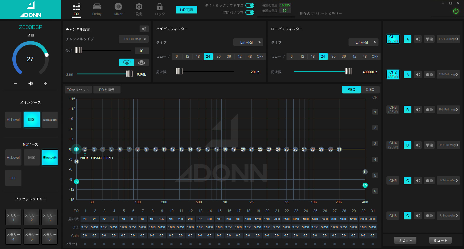 Z600DSPは、クラスAB級4chアンプに、6chDSPを内蔵したADONN DSP-AMPのエントリーモデルです。